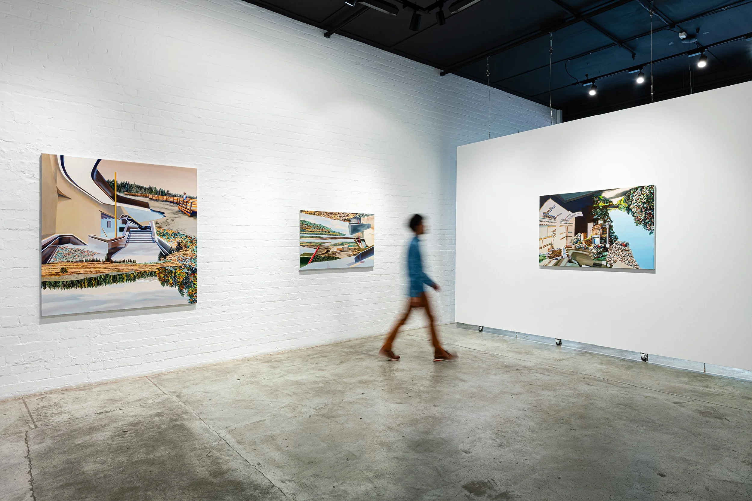 In Chin’s shifting compositions, distinctions between earth and sky, past and future, collapse and repair, become increasingly unstable. Canvases span the Texas desert to the Colosseum, where moments of intimacy - such as a Japanese futon placed among ruins - suggest the possibility of sanctuary within disorder. Emerging from debris, architectural and natural forms are bathed in a warm, luminous glow, carrying us through cycles of regeneration.