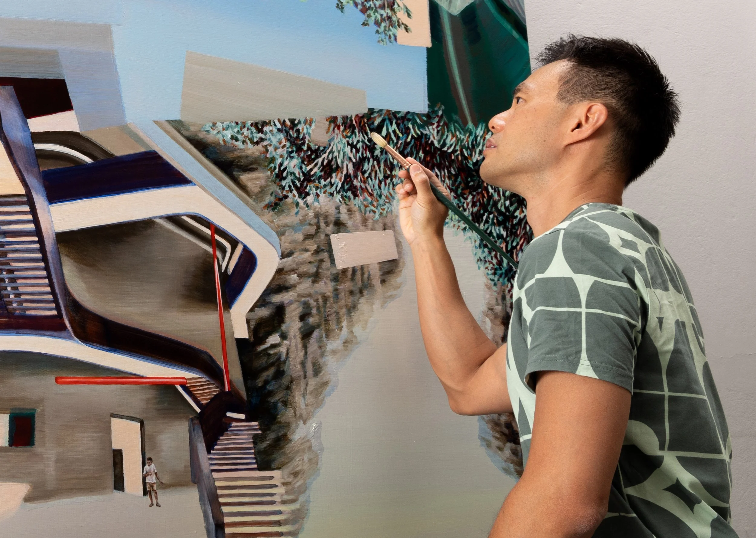 ‘…Exploring themes of borderless territories and transcendence, Chin's work will intersect inverted landscapes, blending domesticity with wild landscapes evoking a sense of parallel dimensions and portals to other worlds… "With this series" says Chin, "I want to open a meditative space to channel the metaphysical."